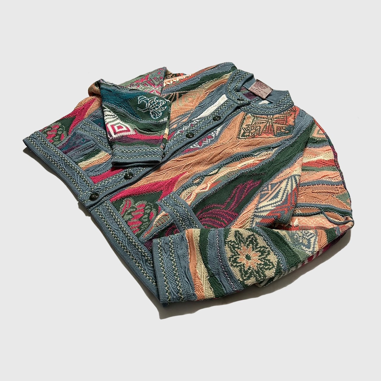 COOGIの芸術性と花柄がかわいい中性的なデザインのカーディガンになります。90sのスペル変更後のタグはかなり出回っていますが80sのスペル変更前はかなり希少なものとなっております。